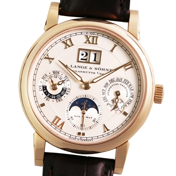 A.ランゲ&ゾーネ は、言わずと知れた世界五大高級時計の一つです。ランゲマティック・パーペチュアルは、アウトサイズデイト表示を搭載する永久カレンダーを実現した世界初の機械式腕時計です。永遠への願望が、ランゲマティック・パーペチュアルの時を越えたデザインにもつながっています。是非、ご検討ください!!
