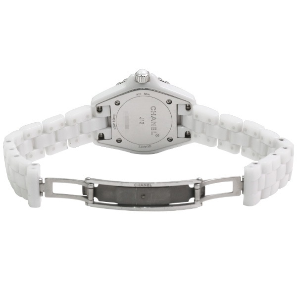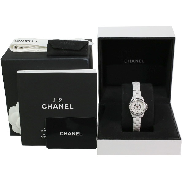 【美品】【中古】CHANEL シャネル J12 ホワイトセラミック ベゼルダイヤ H2572 保証書(2017年8月記載)【クオーツ】【レディース】【腕時計】