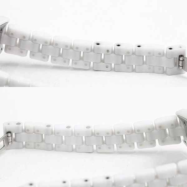 シャネルから2010年誕生モデルの『J12』が入荷いたしました。セラミックをケースとブレスレットに採用するという斬新な作りが魅力的なモデルです。ベゼルとインデックスには、ダイヤモンドがセッティングされていてます。パーティーシーンにも合う華やかなデザインで存在感があります。様々な有名人も愛用している知名度も高いお勧めの商品です。