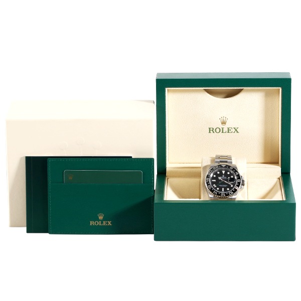 緑のロレックスカラーのGMT針が魅力的なGMTマスターII。高級感を纏ったラグジュアリースポーツモデル。セラミック製になったベゼルは、美しいだけではなく傷が付きにくくなりました。今まで以上に高級感が増した「GMTマスターII」。機能・デザイン共に大変お勧めです!