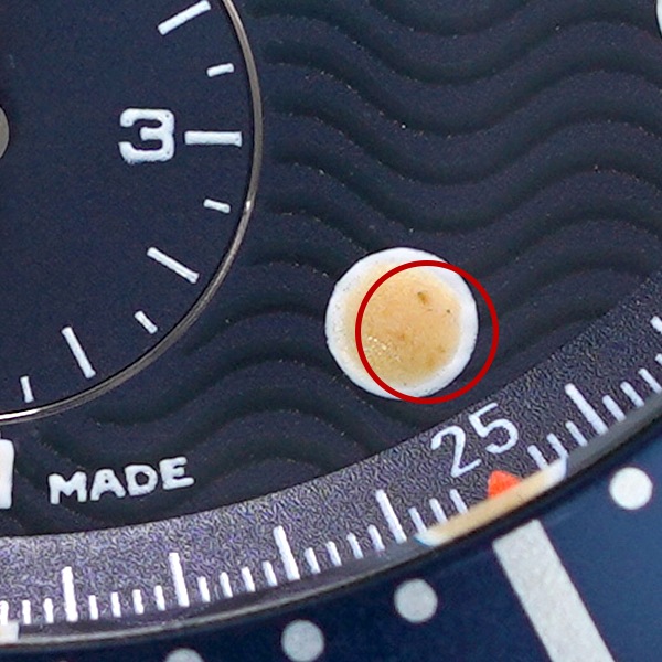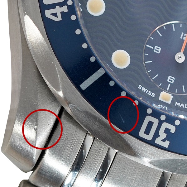- 備考:2023年3月にOHを行なっております。使用に伴う小傷や打痕がございます。風防10時位置付近にチップ・ベゼル傷・針傷・インデクッスに経年劣化が見受けられます。