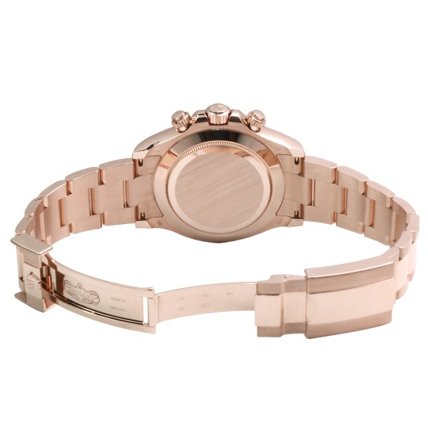 ロレックス・スポーツモデルの最上位機種であり最人気機種の『コスモグラフ・デイトナ』。完全自社開発された垂直クラッチ式のクロノグラフムーブメントのキャリバー4130を搭載。18Kエバーローズゴールド無垢に、インデックスには8Pダイヤがセットされておりラグジュアリー感抜群です。