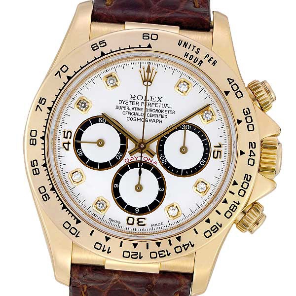 ロレックス、スポーツモデルの最上位&最人気機種の『コスモグラフデイトナ』の入荷です。こちらは『Cal.4030』を搭載した、金無垢モデルになります。重厚感のあるイエローゴールドケースに8ポイントのダイヤインデックスで高級感と存在感抜群の華やかな雰囲気の一本です。是非、ご検討ください!!