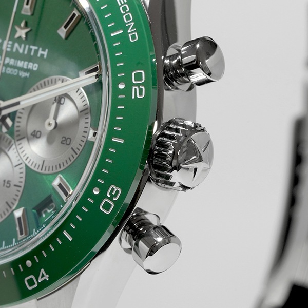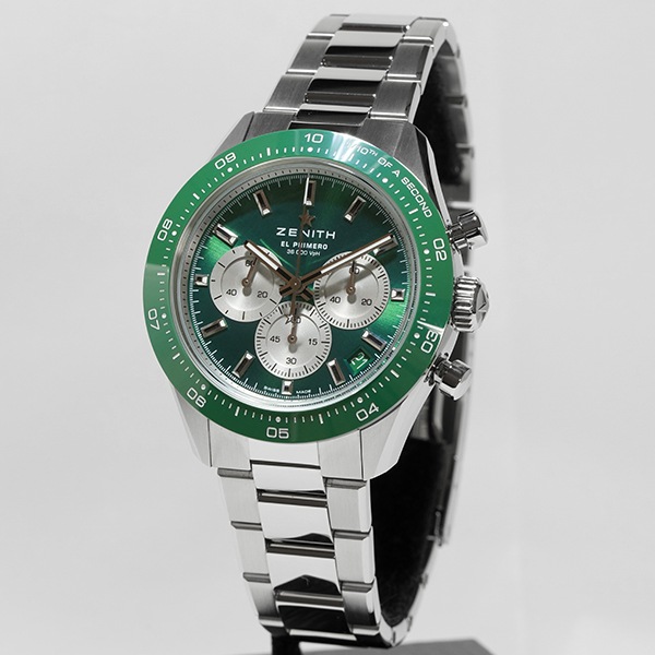 ゼニスから『クロノマスター スポーツ ヨシダ スペシャルエディション』が入荷いたしました。グリーンのサンレイパターンの文字盤にグリーンセラミック製ベゼルが特徴的な一本です!!ムーブメントには1/10秒精度の自動巻クロノグラフムーブメント "エル・プリメロ 3600" を搭載。限定244本の大変希少な一本です。是非ご検討ください!!
