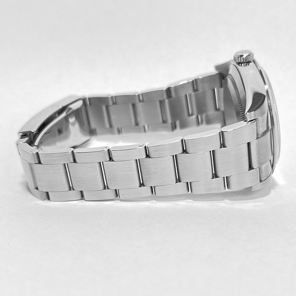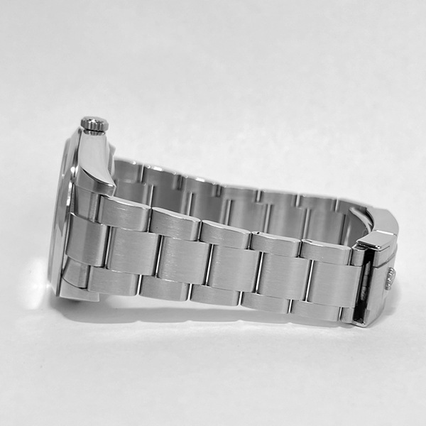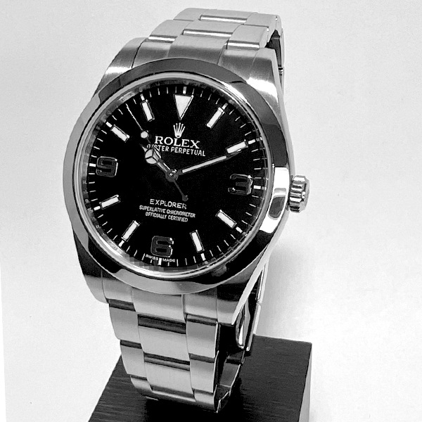 1953年にロレックススポーツモデルの先駆けとして登場した『エクスプローラー』。ブラックダイヤルに3、6、9のアラビア数字と12時位置に三角マークを配した視認性を重視したシンプルなデザインです。