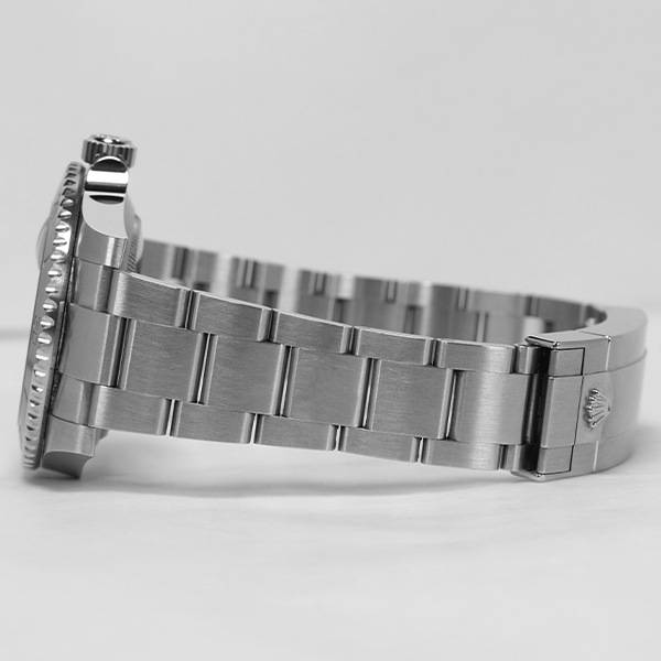 大定番で永遠の人気モデルにして、ベゼルにセラミック素材を配合した新型サブマリーナデイト。ベゼルは、耐蝕性と耐傷性に優れる「ブラックのセラクロム製(セラミック)」となり、目盛りは「プラチナでコーティング」されています。ブレスレットは「ロレックス・グライドロッククラスプ」で、「2mmごと、最大20mmまで」の長さ調節が簡単にできます。まさに一生使える、間違いないモデルです。
