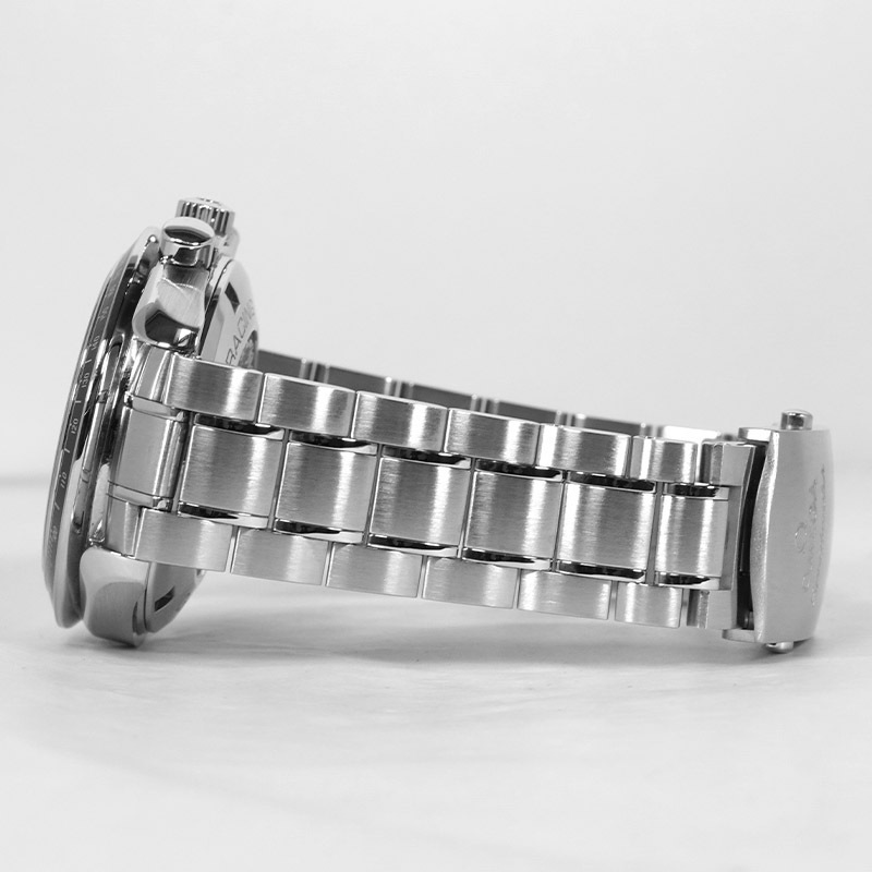 プロドライバーにも愛用されるレーシングは、タキメーターベゼルと横3つ目インダイヤルの特徴的な表情はそのままに、よりスッキリとモダンに仕上げられております。ムーブメントにはSi14シリコン製ヒゲゼンマイを採用したフリースプラングテンプとなる、キャリバー3330の自動巻きクロノグラフ・クロノメーター・コーアクシャルムーブメントが搭載されています!!