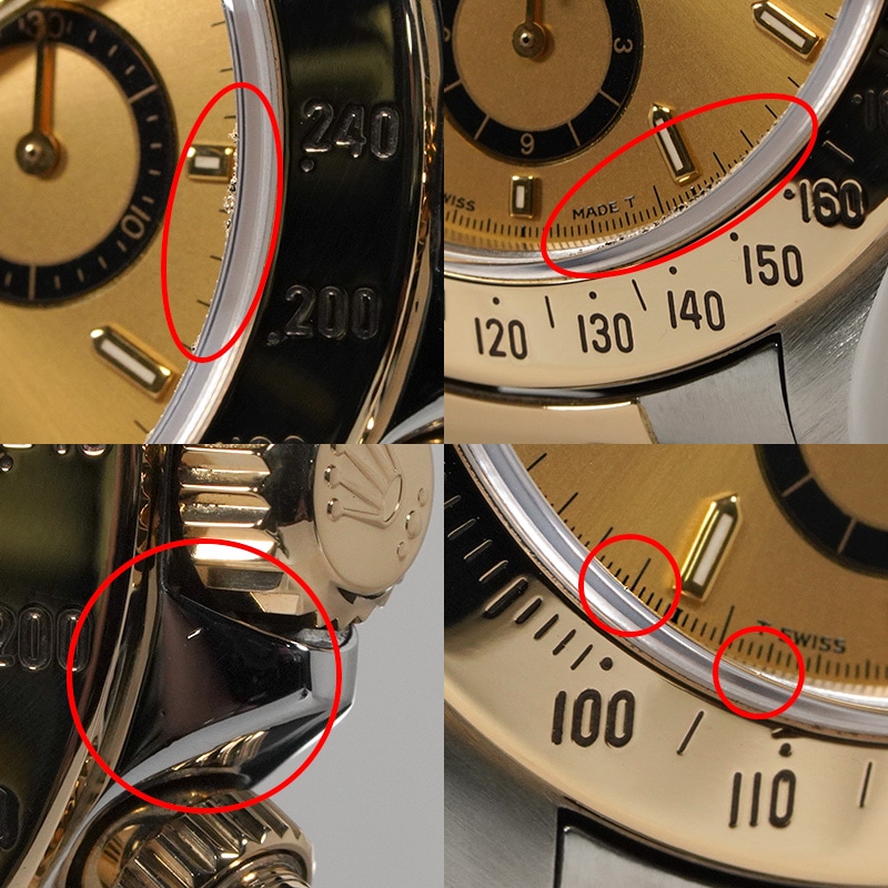 - 備考:使用に伴う小傷・打傷がございます。針に経年劣化・風防に数箇所傷・ブレスレットに若干のヨレが見受けられます。クラスプコードはW9になります。夜光は全てトリチウムのままで大変希少な個体になります。外箱と冊子は欠品しております。