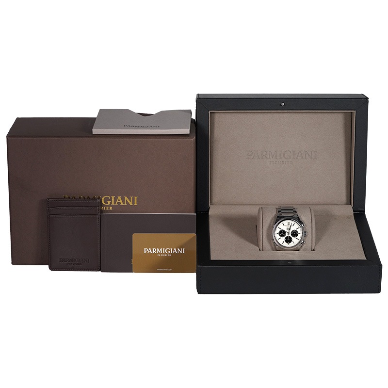 パルミジャーニ・フルリエは、「神の手を持つ時計師」と呼ばれたミシェル・パルミジャーニが創業したブランドです。3つのインダイヤルを配したクラシックなレイアウトながら、ミニマルでモダンなデザインが特徴。高性能な自動巻きクロノグラフムーブメントを搭載し、スポーティさと上質さを兼ね備えた1本です。
