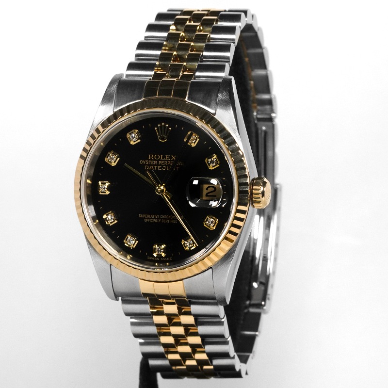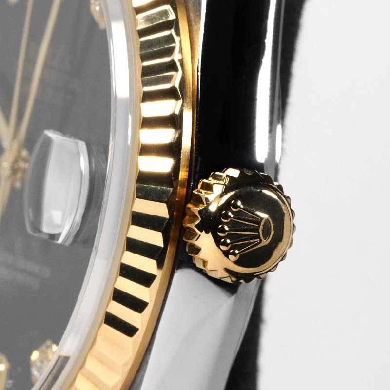【2025年7月OH済み】【美品】【中古】ROLEX ロレックス デイトジャスト 16233G P番 (ブラック/10Pダイヤ)