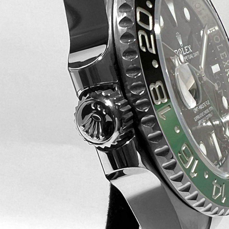 2022年の発表モデル『126720VTNR GMTマスターII』の入荷です。GMTマスターを代表する伝統的なツートンカラーから通称「スプライト」と呼ばれ、左利きの方でも使用しやすい用に設計された左リューズが最大の特徴になります。ムーブメントには70時間のパワーリザーブを実現した「Cal.3285」を搭載しております。是非、ご検討ください!!