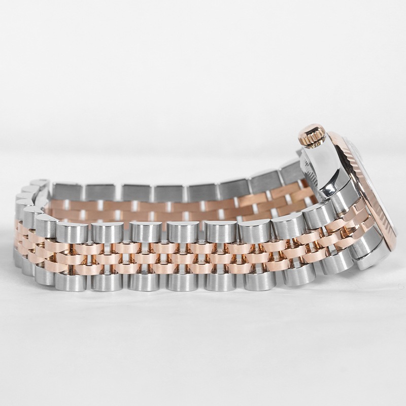 1945年に登場して以来、世界中で年代や性別を問わず愛されているロングセラーモデル「デイトジャスト」。12時に日付が瞬時に変わる「デイトジャスト」機構を搭載。こちらのモデルはピンク文字盤にローマンインデックスを合わせたレディースモデルとなっております。是非、ご検討ください!!