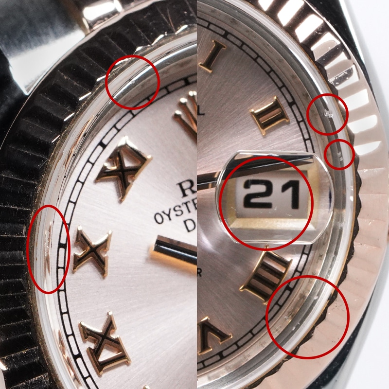 - 備考:2025年11月にOHを行なっております。美品の商品になりますが、風防に数箇所傷や欠け・ブレスレットにヨレが見受けられます。こちらの商品は付属品無しの本体のみになります。