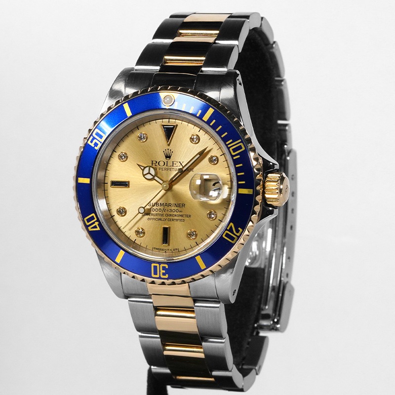 ロレックスから「サブマリーナ デイト 16613SG」が入荷しました。人気のサブマリーナ コンビモデルに8ポイントダイヤがセッティングされています。スポーティーとゴージャスを兼ね備えた唯一無二の一本です。是非ご検討ください!!