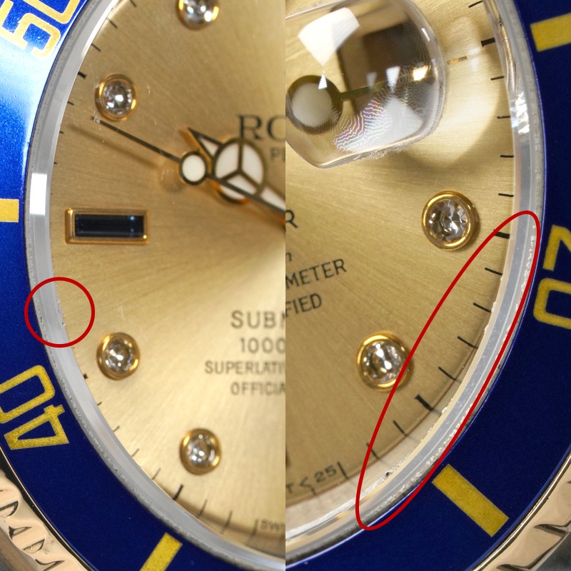 - 備考:使用に伴う小傷がございます。風防に数箇所欠け・ブレスレットに若干のヨレが見受けられます。リューズのドット部分が薄くなっております。夜光は全てルミノバになります。こちらの商品は付属品無し・コマが一つ欠品の本体のみになります。