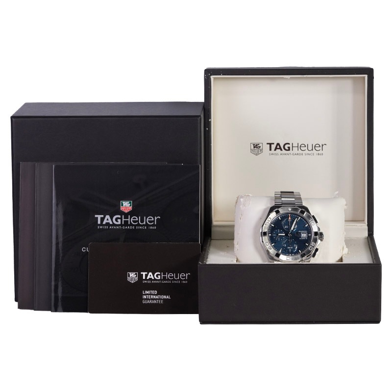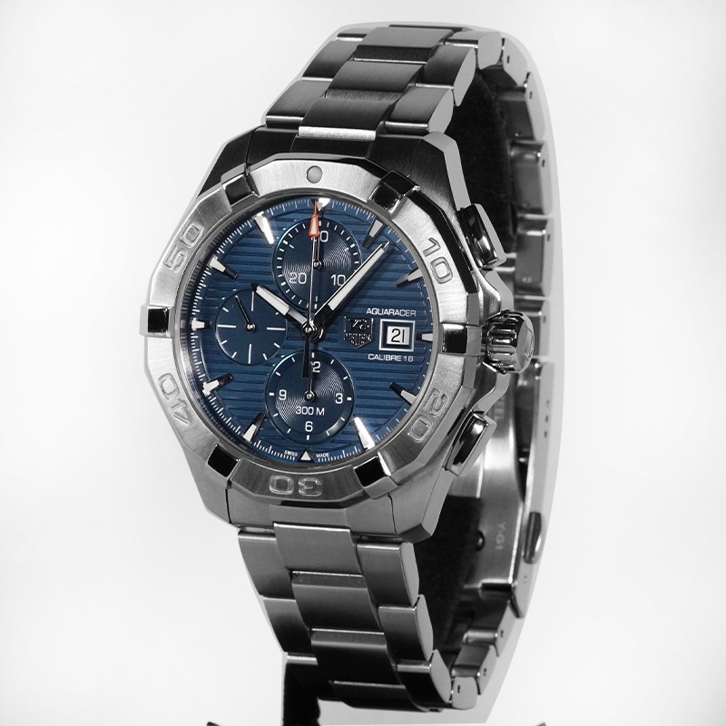 タグ・ホイヤーから「アクアレーサー キャリバー16 CAY2112.BA0927」が入荷しました。爽やかなブルーダイヤルが魅力のスポーティなクロノグラフモデル。300m防水と堅牢なステンレススチールケースを備え、海でも街でも活躍します。自動巻キャリバー16搭載で精度と信頼性も抜群。アクティブな大人の腕元にぴったりの一本です。
