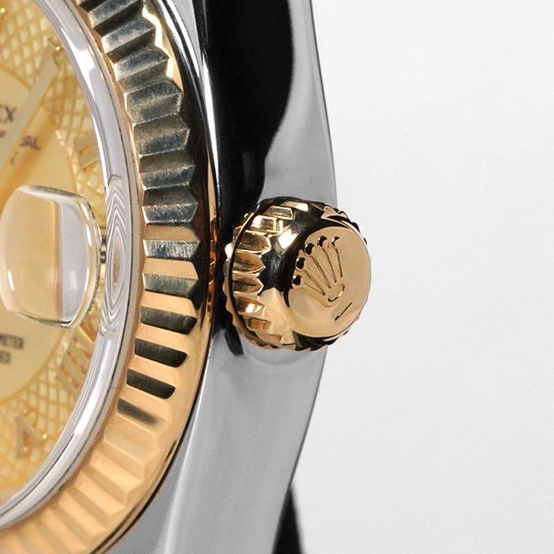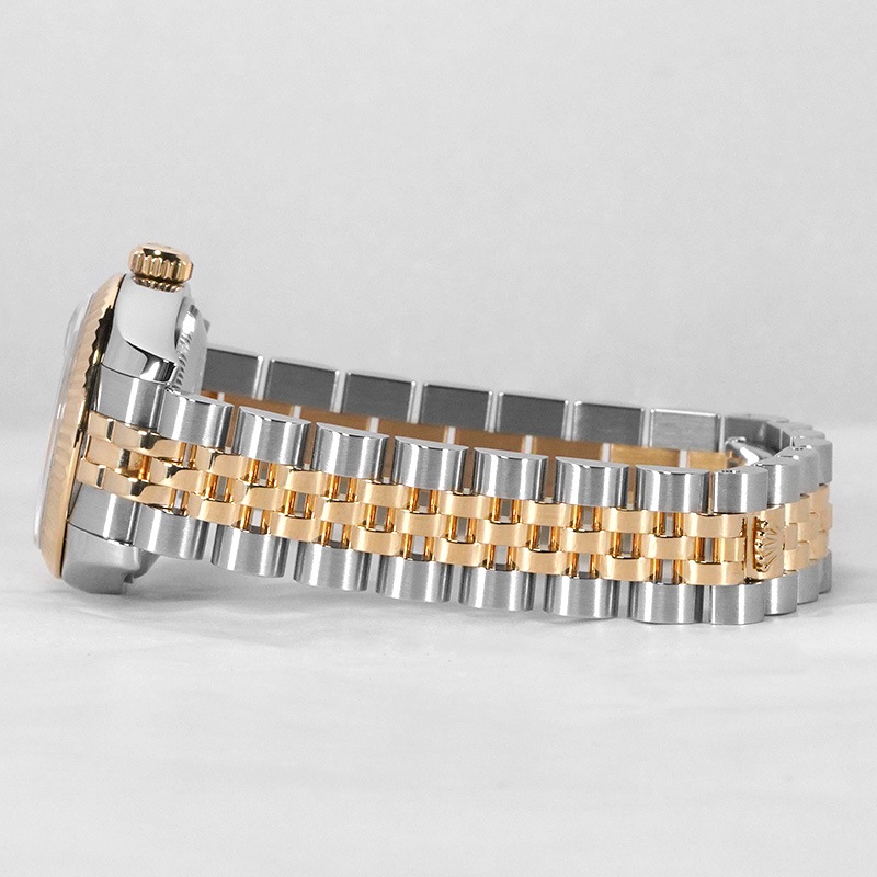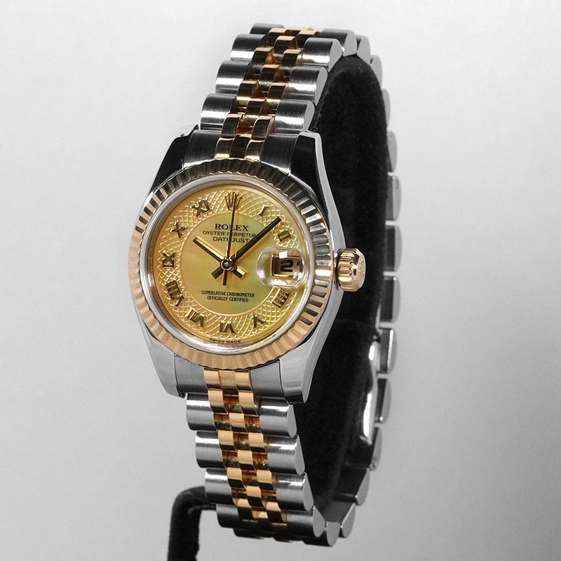 ロレックスから「デイトジャスト 179173NRD (イエローシェル ミリヤード文字盤)」が入荷いたしました。18Kイエローゴールドとステンレススチールを組み合わせたコンビ仕様に、華やかなイエローシェルのミリヤード文字盤を備えたエレガントなモデルです。光の角度で表情を変えるシェルダイヤルが、上品さと華やかさを演出。約26mmのケースサイズは手元に美しく収まり、日常使いからフォーマルなシーンまで幅広く活躍します。是非、ご検討ください!